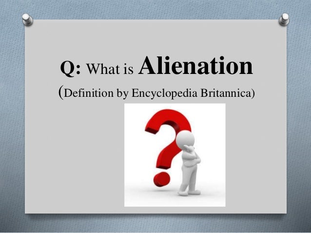 Alienation, in property laws: see tenure,in law, manner in which property in land is held. The nature of tenure has long been of great importance, both in law and in the broader economic and political context. Click the link for more information. Alienation. an individual's feelings of estrangement from a situation, group or culture, etc. a concept used by, in his early work, in reference to the core relationships of capitalist production and their human and psychological effects.